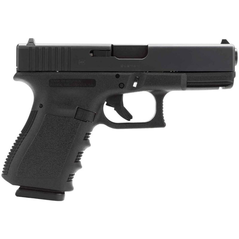 The Glock G19 pistol in 9mm Luger is a compact, portable firearm with polymer frame construction. Although it carries many features from the full-sized version, the G19 in 9mm is adapted to maximize portability. The G19 has an unloaded weight of 21.16 oz, a 4.02-inch barrel length, and a 7.28-inch overall length, with a 10+1 round capacity. The Glock G19 also features a modular back-strap system which allows its grip to accommodate a range of hand sizes. It is a versatile weapon with applications in service and security duties, personal protection, and concealed carry.